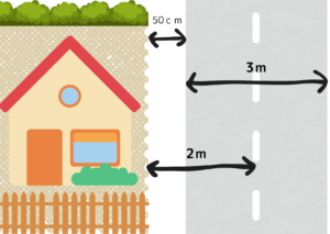 幅員4m未満の道路に接する土地に建物を建築する場合、道路中心線より2m敷地を下げて道路敷として提供しなければ建築の許可が取得できません。この道路提供部分をセットバックといいます。(建築基準法42条2項、同法44条)